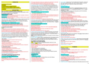 This template covers Topics 5-10 of introduction to business law. This colour coded template includes headings, key words, rules, definitions etc. for each topic. Template also refers to cases in the text book which were discussed in lectures. The last few pages of the template has each referred case laid out in more detail with a page number for where to find it in the text book. This template was taken into the open book exam and was of GREAT use. It saved a lot of time reading through the textbook and other notes/ materials. This template basically covers every lecture in 10 pages. NOTE: some cases were labelled with page numbers however not explained so it is up to you to put in that little bit of work to read about the case yourself. This template will also save A LOT of time when you are preparing to study as it is already set out for you. If you understand the topics and have paid attention in this unit you will 100% understand the template and what it is talking about and you will find it to be of great use for your study preparations for the exam. Contains: T5 Implied terms of the contract, T6 Remedies, T7 Misrepresentation & commercial Misconduct, T8 Legislation & remedies (liability for defective products), T9 Consumer rights and the sale of GOODS & services (ACL), T10 Agencies.