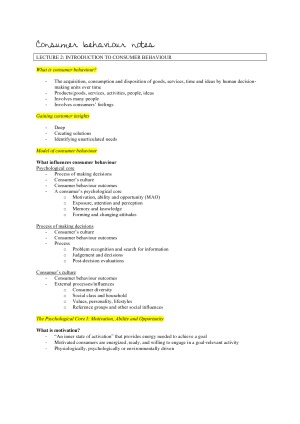(HD) CONSUMER BEHAVIOUR NOTES: EASY & CONCISE!