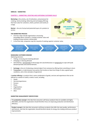 MMK101 Marketing Fundamental notes (Deakin University) - Notes are written in line with learning objectives for each week - so they cover all relevant content. - Glossary also included at the end of notes. - Includes headings and simple and easy to read tables and pictures. - Helped me get a HD