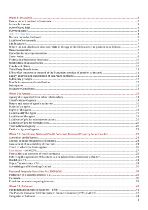 Comprehensive notes on Insurance, Agency, Credit Law, National Credit Code and Personal Properties Securities act, Bailment, Bankruptcy & Corporate Insolvency
