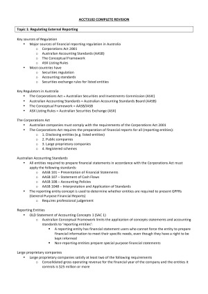 A complete set of notes for ACCT3012. Used to gain a 7 in the Mid-Semester Exam, Case Study and Final Exam. Topic 6 (non-examinable information and tips on developing your case study) not covered.