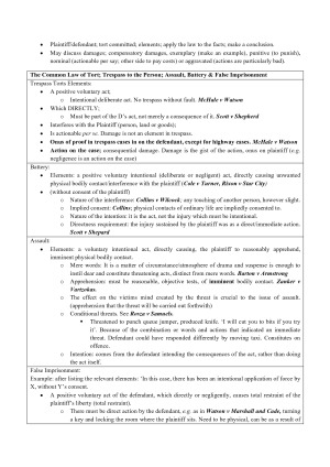 Comprehensive Torts notes as at Autumn Semester 1, 2017.
