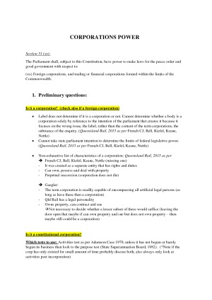 These are detailed exam notes which include a hypo structure to help you answer exam questions in a coherent way. They also include very detailed notes on each of the cases covered in the course and notes on how each of the areas connects to the rest of the course.