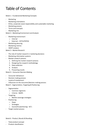 These notes contain a detailed summary of all content covered in BUSN1102. Table of Contents provides a summary of all major points covered in the semester. Notes are divided into sections, with each section focused on each week of the semester. The summary includes examples.