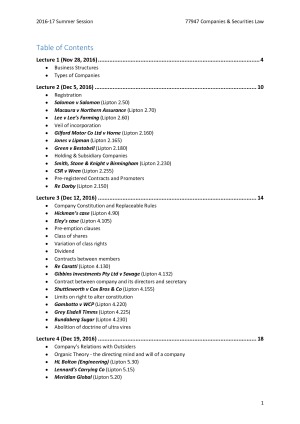 Complete subject notes, separated by lecture. Comprehensive with all relevant sections from Corporations Act covered and references to relevant cases (cases also have page references to the subject textbook, Understanding Company Law). Detailed contents pages for ease of use.