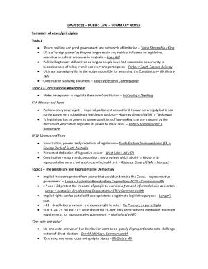 This document includes the following: 1. Brief summary of principles and cases 2. Brief summary of important legislation 3. Checklists for problem questions by topic These notes are ideal as a quick reference for open book exams.