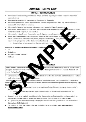 Complete seminar/reading notes for Administrative Law. I made them as succinct as possible without skimping on important details. Includes all relevant topics, in order, as they were covered in the 20 seminars (I attended all of them).