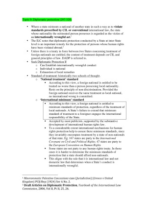 Extremely comprehensive & clear notes on the lectures and required text book readings pertaining to Topics 3-13. Case law is highlighted in green and legislative instruments are highlighted in blue for easy reference during the take-home exam. All legal sources are footnoted to indicate which page of the required text book the reference can be found at. I attained a Distinction in International Law using these notes as my primary study resource. Contains a table of contents at the beginning for added exam assistance.
