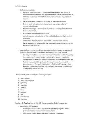 Entire semester notes which covers topics relating to: -Brain structures -Assessment techniques relating to pathology of the nervous system -Effects of lesions on the body -Nerves of the body -Models of plasticity -Conditions affecting the nervous system including MS, Myasthenia Gravis. - Mechanisms of Pain More topics covered.