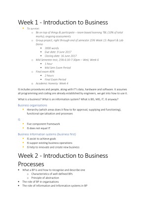 Comprehensive INFS1000 notes. Includes: -Notes for all lectures -Diagrams of content (To help explain visually) -Tutorial content Score a HD with these notes!