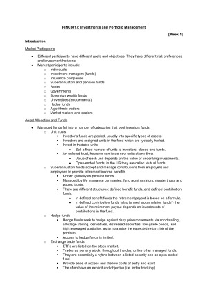 Subject notes for USYD FINC3017