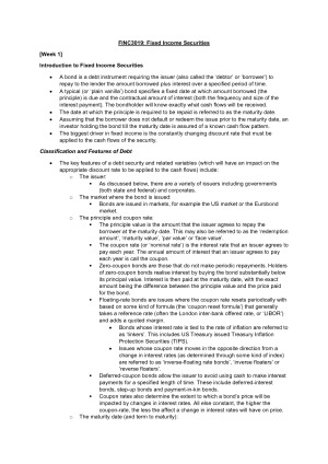 FINC3019 Fixed Income Securities Notes - Ranked 3rd
