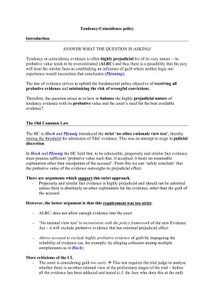 These are policy notes on the following topics: - Tendency/Coincidence Evidence - The Unfairness Discretion - The Right to Silence They were prepared after I read a number of articles, textbooks, lecture notes etc. They are detailed and thorough.