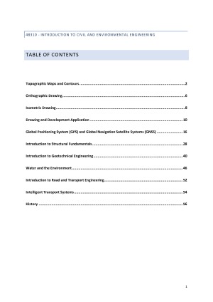 These well-structured and comprehensive notes are perfect for the Introduction to Civil and Environmental Engineering final exam and additional study throughout the semester. Notes include diagrams, drawings and visual aid to assist learning and cover the entire course, including the history of civil engineering. I compiled these notes throughout the semester from a variety of resources and achieved a HD.