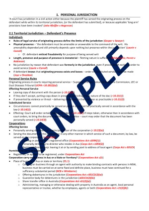 My complete course summary notes for Laws 2018 - Private International Law A. Includes all relevant topics that were studied when I took the course. I attended every seminar. These notes made from a variety of sources including; seminars, textbook and other notes. Includes some diagrams and tables that were useful for my exam preparation.