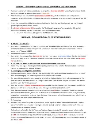 My course notes for the 20 seminars that were studied when I took the subject. Notes are made mostly from the seminars and the relevant textbook. These were the only set of notes that I ended up using in the final exam to achieve a distinction grade in the final and a high credit overall.