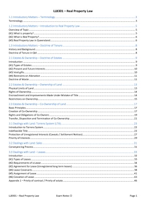 LLB301 Real Property Law Full Notes for Exam