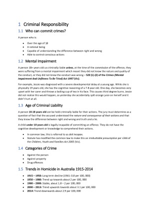 Comprehensive exam notes for LAWS106, Criminal Law and Procedure