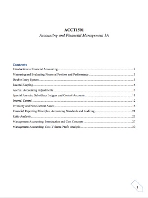 This is the final notes that are recommended for ACCT 1501 student to revise and learn from for the final exam. The notes summarise the most important part of each chapter that will definitely be examined in the final exam or at least useful when it comes to problem-solving questions