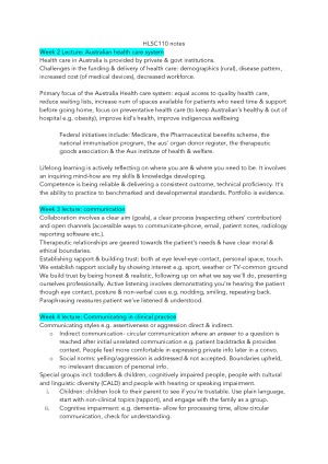 Subject notes for ACU HLSC110