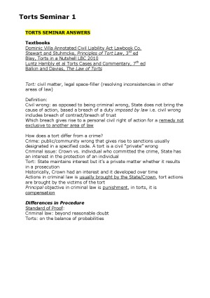 Answers to all questions that are asked in the Tort's tutorials/seminars from the supplementary book all UTS Law Students are supplied with beginning of the course.