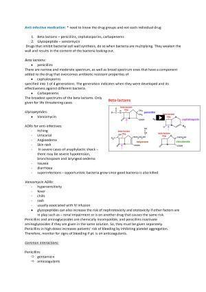 Exam and unit notes contains weekly seminar information as well as drug classes with specific examples and their side effects/risks, common drug interactions, indications, nursing considerations and mechanism of action. The document has been set up in the weekly format that is followed in class. I usually type my notes in bullet form, so it should be quite easy to follow. The preview is the first two pages of my notes for week 1. Good luck with your studying :)