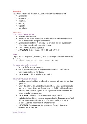 These notes have been set out so clearly that someone who had not sufficiently studied this subject could look at these notes and pass the final exam. They are detailed, yet concise. They are colour coordinated, bolded and dot pointed, so that each principle is clearly understood, therefore ensuring you do not lose marks for missing a relevant legal principle/case. They really helped me do well in this subject as I relied heavily on these notes.