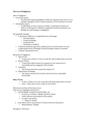These notes have been set out so clearly that someone who had not sufficiently studied this subject could look at these notes and pass the final exam. They are detailed, yet concise. They are bolded and dot pointed, so that each principle is clearly understood, therefore ensuring you do not lose marks for missing a relevant legal principle/case. They really helped me do well in this subject as I relied heavily on these notes.