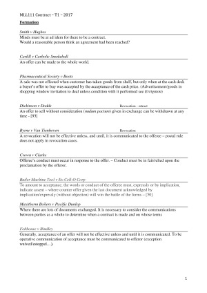 Summary of every case and the precedent it sets, so that you can answer any exam question. Every topic is covered - the sample stops at top of page 4 of 24. Logically set out so its easy to follow and it means you won't waste any time trying to find the cases and the rule it stands for. I relied on them during the final exam.