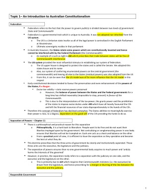 Logically set out notes so its easy to follow and it means you won't waste any time trying to find the cases and the rule it stands for in the exam. Especially given constitutional law is a hard topic. Notes are included for every topic and a 'quicker' summary guide at the end of each topic. I relied in these notes for the final exam Every topic is covered for MLL323 - the sample stops at page 12 of 114.