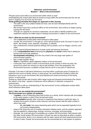 BEHAVIOUR AND ENVIRONMENT MODULE NOTES
