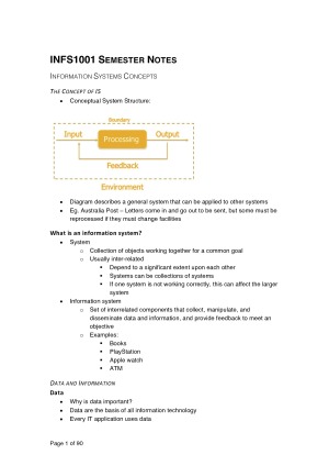 Comprehensive and clear notes for the entire semester of INFS1001. Includes all modules from 1 to 11.