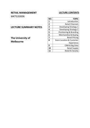 (H1) Retail Management (MKTG30006) Lecture Summary