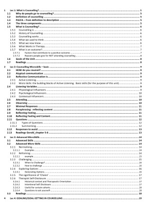 PYB 208: Counselling Theory and Practice 1 Comprehensive lecture notes