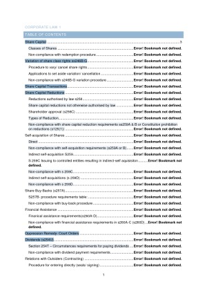 30 pages easy to follow table of contents Notes which cover relevant topics and cases. Utilises extra cases/ notes from the Corporations Legislation compilation/ textbook.