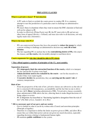 These are policy notes on the following topics: - Privative clauses - Legitimate Expectations - Reasonable apprehension of bias - Standing for representative body in AAT vs JR - JR Standing – broad vs narrow They were prepared after I read a number of articles, textbooks, lecture notes etc. They are detailed and thorough and will be more than enough for you to answer policy questions on the exam!