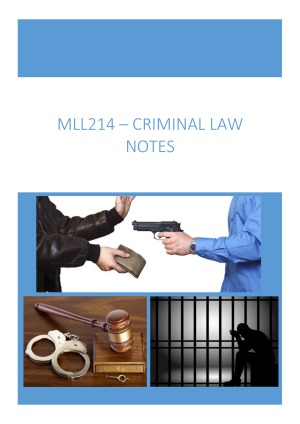 Hi there, If you wish to excel in MLL214 Criminal Law then these notes are essential. They are filled with useful summaries from lecture slides, tutorials, textbooks, and other essential reading materials. These notes also include all case summaries of cases which will be prevalent in the exam and assignments.