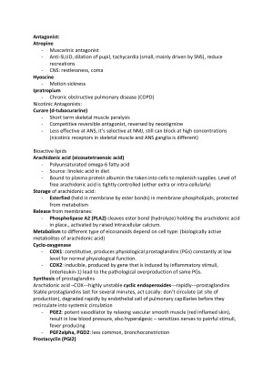 This is a summary of all the drugs appeared in the course with examples and mechanisms listed. I make this list during SWOC and find it's extremely helpful for final exam revision.