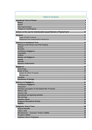 LIFE-SAVER NOTES! Well structured and easy to understand. These notes are great to work off during the course and to take into the exam. Includes: - Intentional Torts - Negligence - Case summaries - All relevant authorities - Elements - All relevant Civil Liability Law provisions