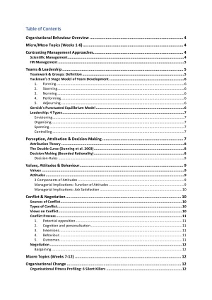 This is a comprehensive guide covering all topics in Organisational Behaviour. It includes: - definitions and paraphrasing to simple terms - links between chapters and concepts - examples linked to case studies - theory frameworks, outlines, and explanations All in an easy-to-read format with a table of contents to easily locate specific sections of notes on demand.
