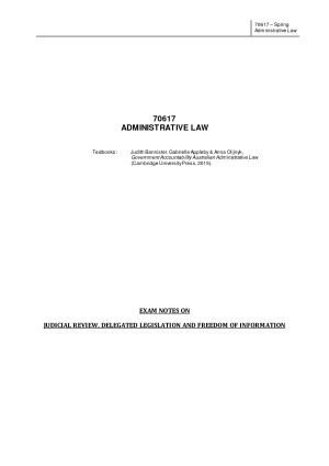 Complete and Comprehensive 70617 Admin Law Exam Notes (Distinction Mark)