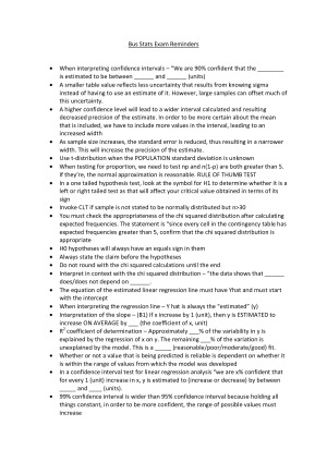 These are a really short, but useful set of dotpoint notes that outline the most important things to remember for the FINAL EXAM. E.g. formulas, rejection rules etc. Great to use in conjunction with my main Bus Stats notes.