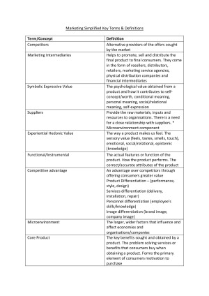 MKF1120 Marketing Theory and Practise Table of Definitions HD 88%