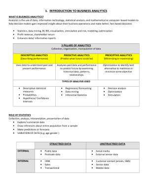 MIS171 Business Analytics Chapter summaries with BONUS EXAMPLES! (HD GRADE notes!)