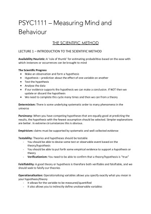 Full course notes - The scientific Method + Statistics Received 90 (HD) for this course. With marks of 37/40 and 38/40 for both in session exams. Did amazing in the final exam as well. All notes included for both research methods and statistics.