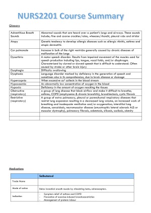 Complete course notes, With glossary and studied medications. Broken down into tutorial based diseases, colour, pictures and diagrams. All you need for complete course summary and exam revision. Correlates with information for 2202 course.
