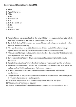 56 EXTENDED MULTIPLE CHOICE QUESTIONS These questions were made as part of my study approach prior to the IMM3042 Exam. It's highly recommended that you not only do lots of EMQs for this type of exam, but also make your own. However, these questions are a good place to start, as a fair few of them were very similar in structure and content to those on the mid-semester tests and the final exam