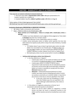 These extended notes for Insolvency Law contain relevant cases, legal principles and statutory provisions required for the final examination. They help you organise and structure your answer to a hypothetical question.