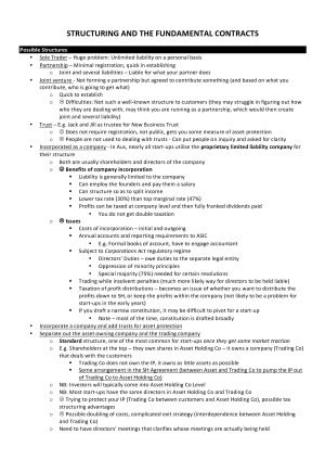 These extended notes for the Start-Up Law winter intensive contain relevant cases, legal principles and statutory provisions required for the in-class test. These notes will also assist with the preparation for the final assignment.
