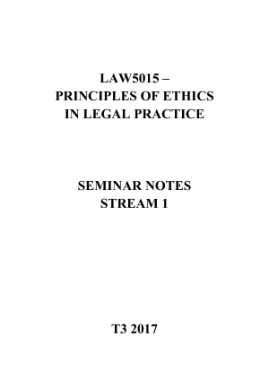 Detailed notes from readings and seminars for Legal Ethics on the following topics: Approaches to Lawyers' Ethics, Overview of Lawyers' Responsibilities, Admission to Practice, Civil Litigation, Criminal Matters, Relationship Duties and Confidentiality, Costs and Trust Accounts, Conflicts of Interest, Complaints, Consumer Matters and Disciplinary Matters.